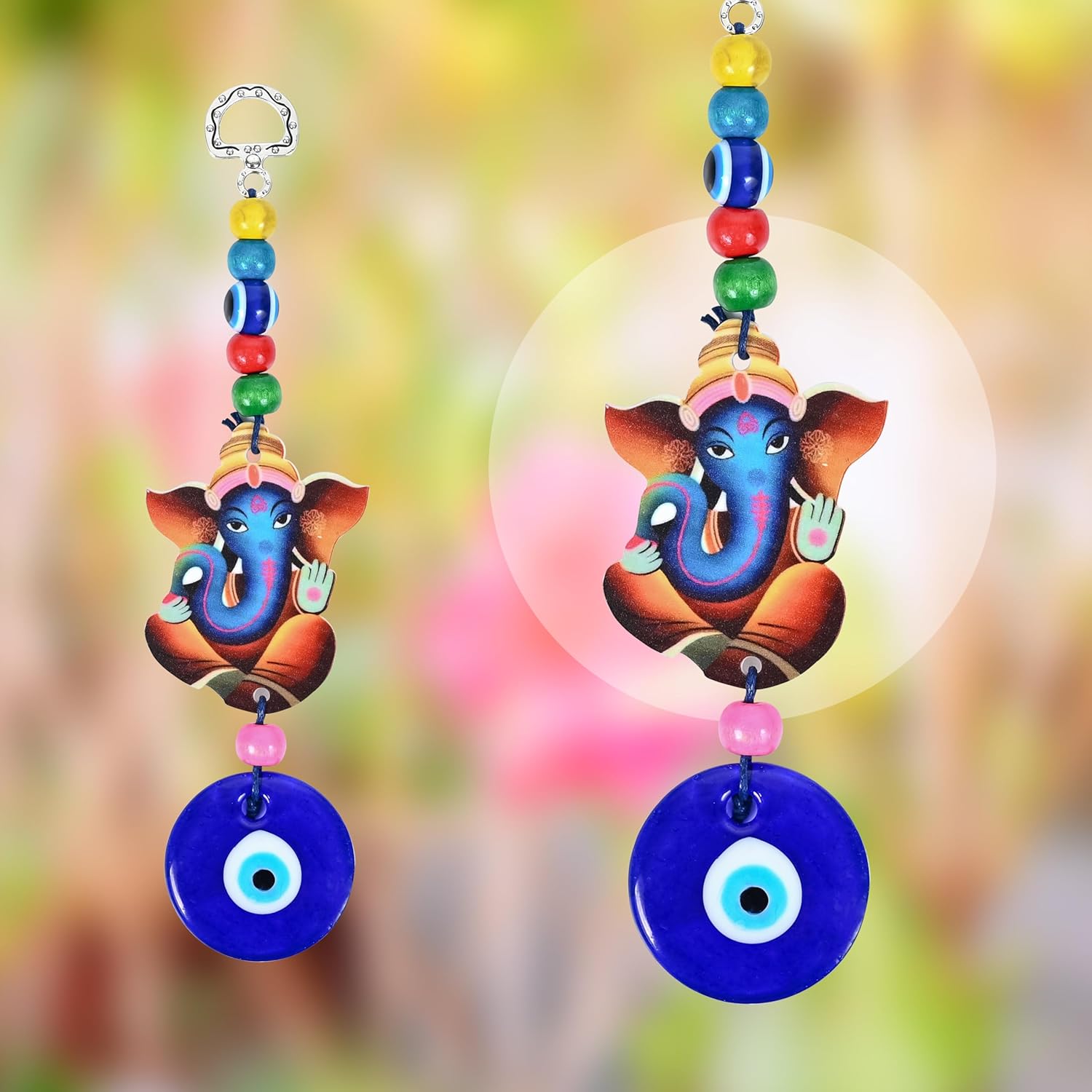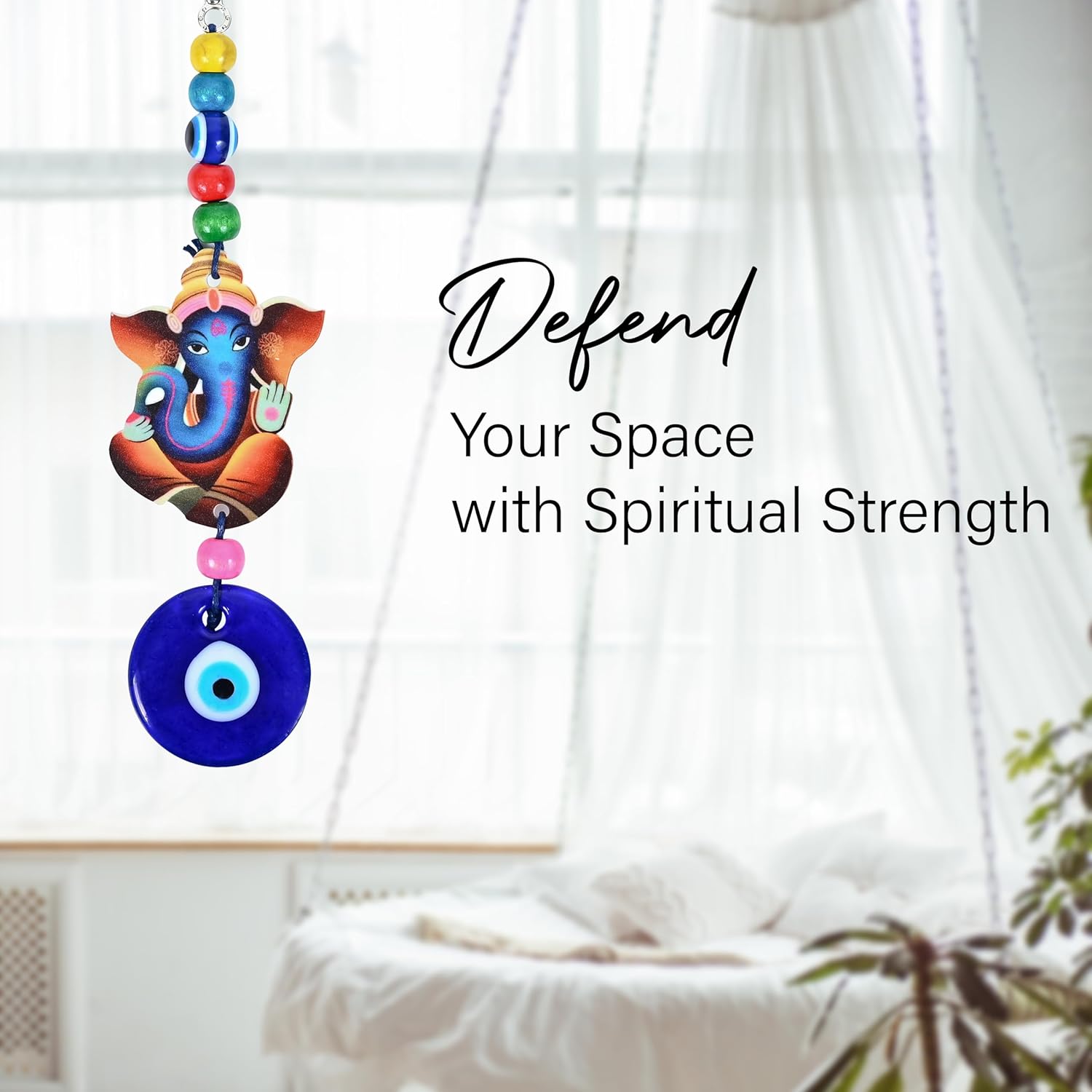 About this item Handcrafted Design: Each piece is meticulously handcrafted, combining detailed artistry with spiritual symbolism. Triple Protection: Features Evil Eye, Ganesha Ji, and Nazar Dosh Nivaran Yantra to offer protection from negative energy and obstacles. Spiritual Balance: The Ganesha Ji symbol removes obstacles while the Nazar Dosh Nivaran Yantra clears bad energy. Decorative Amulet: Beautifully designed as a hanging showpiece, adding an elegant touch to any decor while providing spiritual benefits.