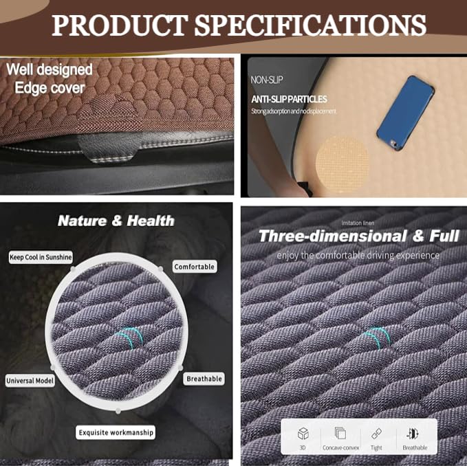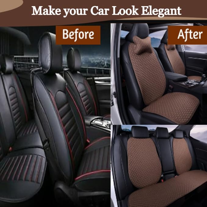 Car Seat cover Protector mat - Material ; Breathable linen fabrics, Bottom Seat Size: 50 * 49 cm; Seat Backrest Seat Size: 45 * 63 cm, Color ; Brown, Seat cover for cars -A breathable car seat cover cloth Absorbs and removes odor from the air Radiation protection. Simple and stylish hexogen pattern, perfectly matched with your car interior. The anti-slip rubber effectively fixes the car seat pad.