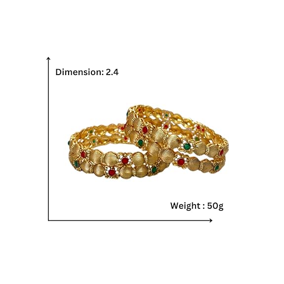 About this item Luxourious Appeal- High quality gold plating give a lavish look Eye Catching: The pink- green coloured gem stone gives a striking contrast that enhance the overall look Versatile- Can be worn with other bangles or alone to give a statement look. Lightweight and Comfortable: Crafted to be lightweight, making it ideal for extended wear without compromising on style or comfort. Gifitng- Ideal for gifting on occasions like birthdays, anniversaries and so on