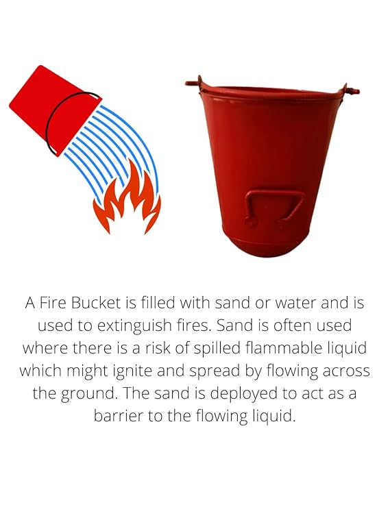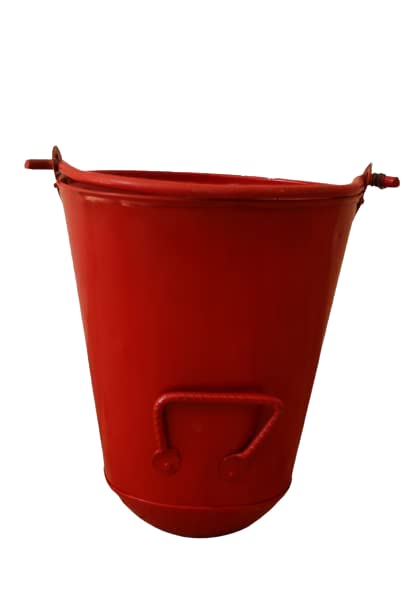 About this item Fire bucket made of strong iron with High Functionality, Colour - Red Great to use outside as well for fire pits, wood burning furnaces or safe disposal of wood burning embers ash is necessary. Flexible Ring handle provide a safe handling and easy way to clean-up and remove Designed with a classic finish that provides functionality for any use or a Iron coating A Fire Bucket is filled with sand or water and is used to extinguish fires